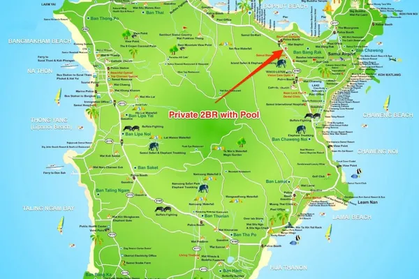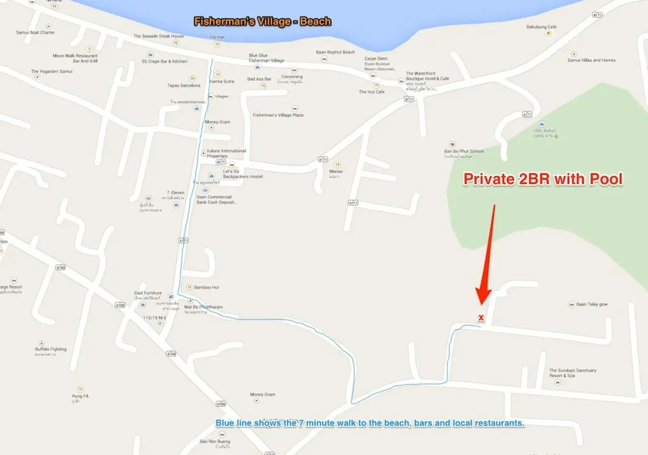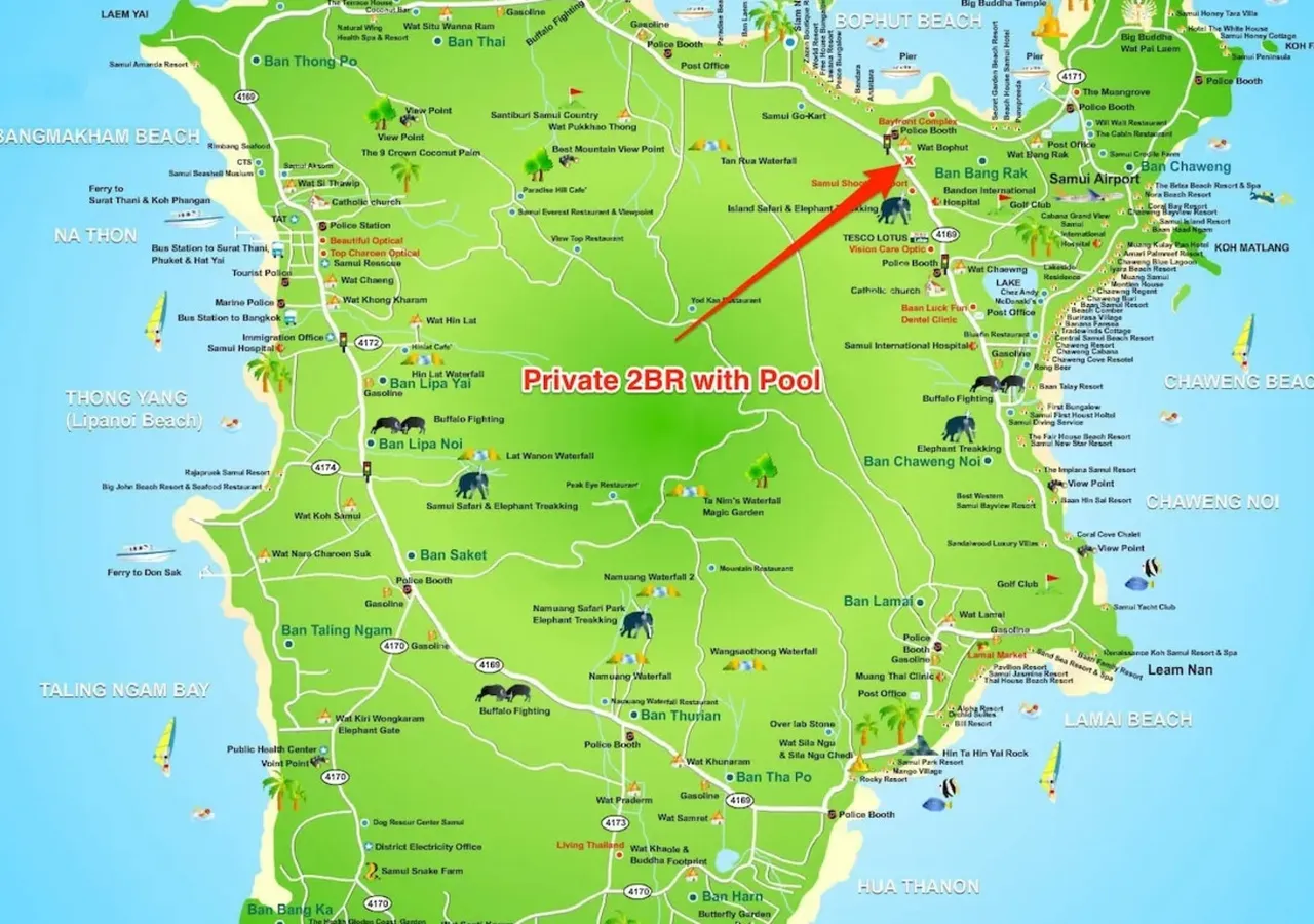 Convenience at your doorstep Bophut provides all the essentials—shops, pharmacies, ATMs, and a range of dining options. Whether you’re grabbing a quick snack or enjoying fresh seafood at the local market, you’ll find everything close by. Plus, its central location makes it easy to explore the island, with Chaweng and Maenam just a short 10 -15min drive away.
